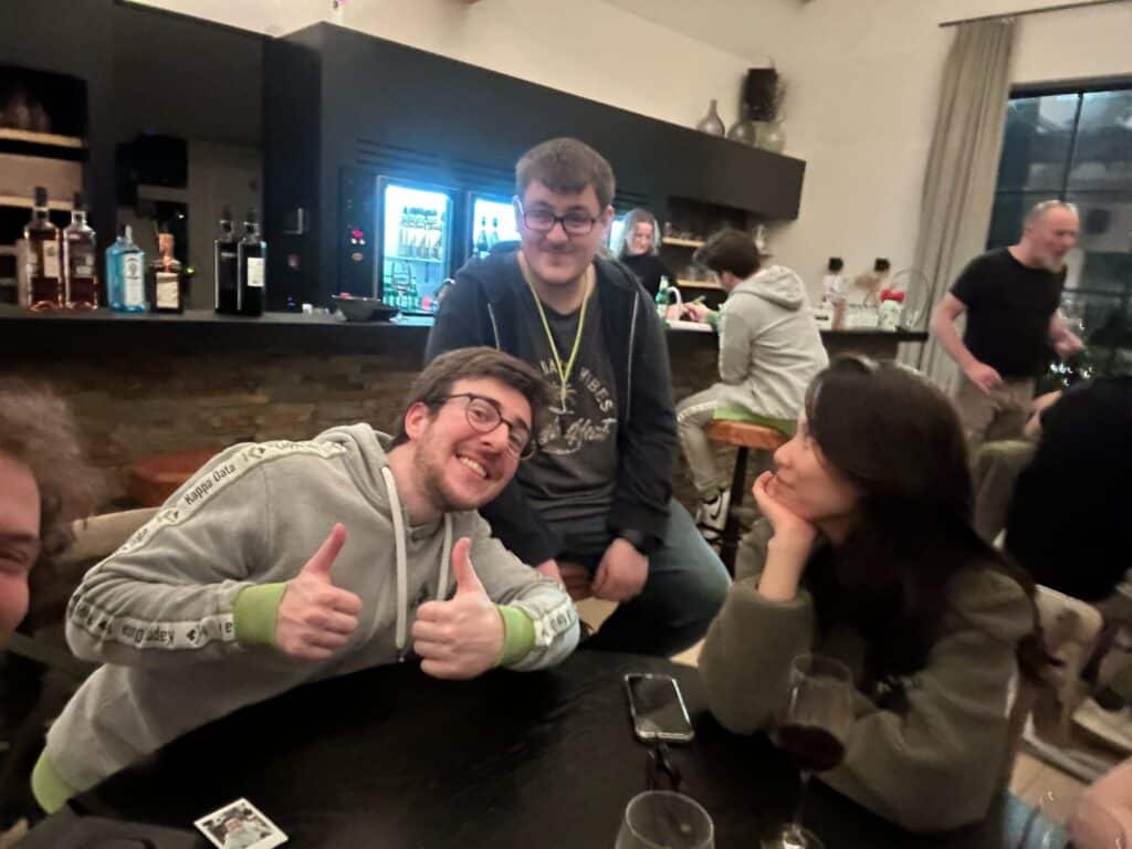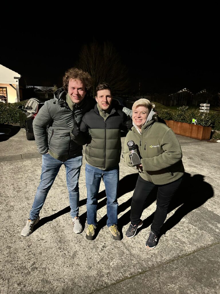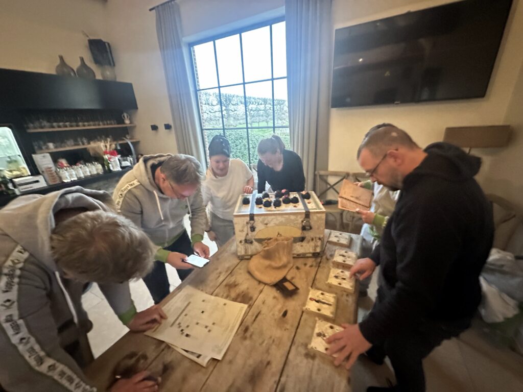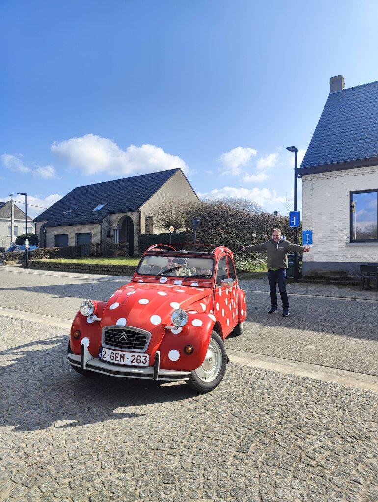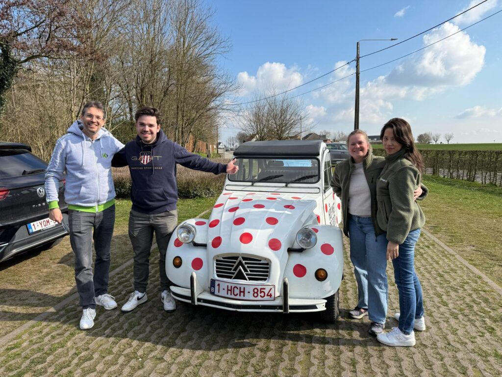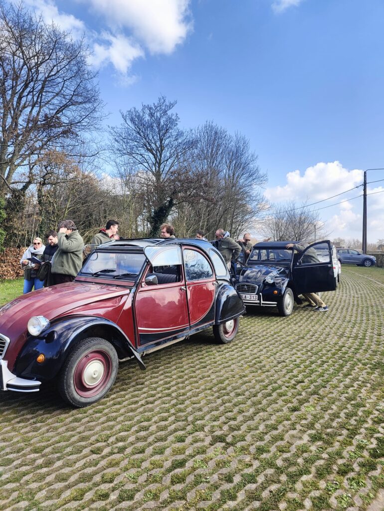 Saturday morning we started fresh with breakfast, followed by a walk or a relaxing yoga session with Sofie—an ideal start to the day. After a quick lunch, we left for Kluisbergen for a 2PK rally through the beautiful Flemish Ardennes. In colorful old-timers, we drove along scenic roads and were given all kinds of crazy assignments and questions along the way. One of the challenges? Driving between two eggs without hitting them—much harder than it looks, but incredibly funny. Congratulations to the winners: Patrick C., Cédric, Katrien P. and Rosalie!