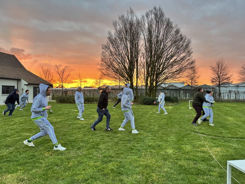For the Kappa Data weekend of 2025, we headed to Kuurne for an unforgettable Squid Game-themed experience! Upon arrival, our colleagues were welcomed at the gate by masked figures with Nerf guns. Whoever had forgotten their official Kappa Data workout gear were immediately hit with a load of darts. The tone was set!