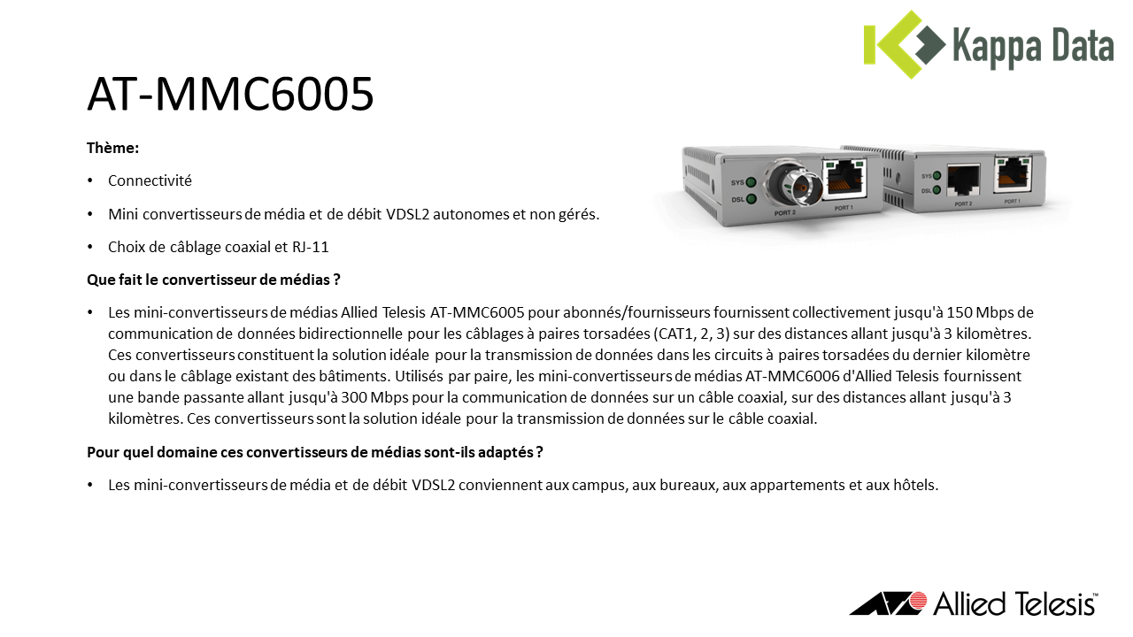 Découvrez ci-dessous la gamme de convertisseurs de médias d’Allied Telesis :