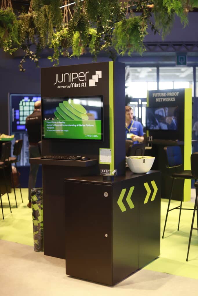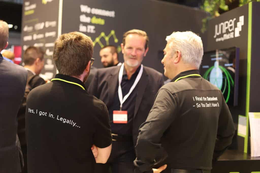 Nog een andere vendor was werd vertegenwoordigd op onze stand: Juniper Networks, gekend voor high-end datacenteroplossingen en AI-native networking. Barracuda Networks was te vinden op een andere ministand om oplossingen voor onder andere firewalling en webbeveiliging te bespreken.